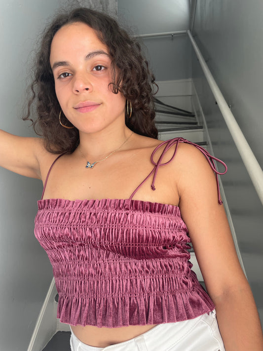 Maroon velvet crop top