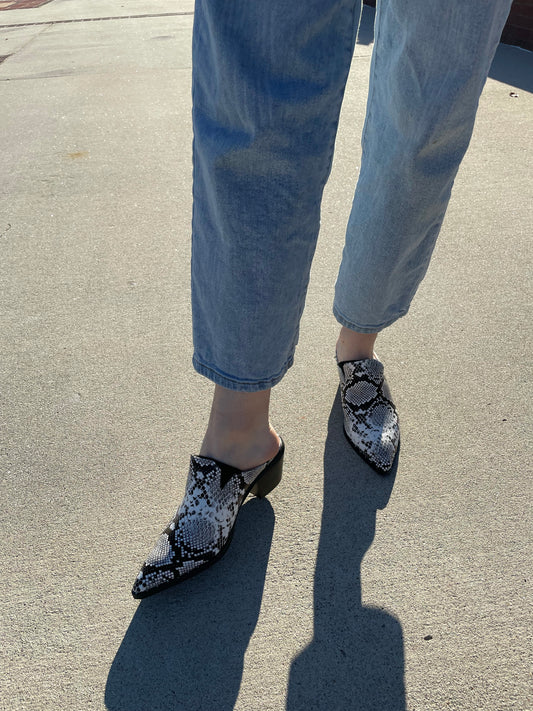 snake print mules shoes